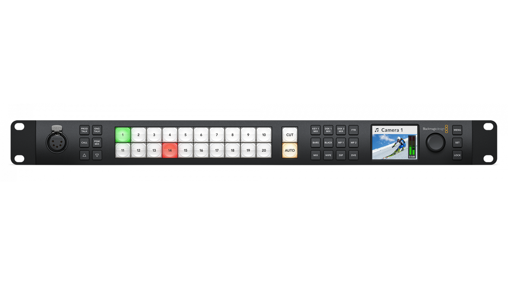компютър,SuperSource процесор, DVE, Chromkeyer, медиен плейър, Multiview и др. Talkback и професионален аудио миксер Fairlight с EQ и динамичен контрол също са интегрирани.