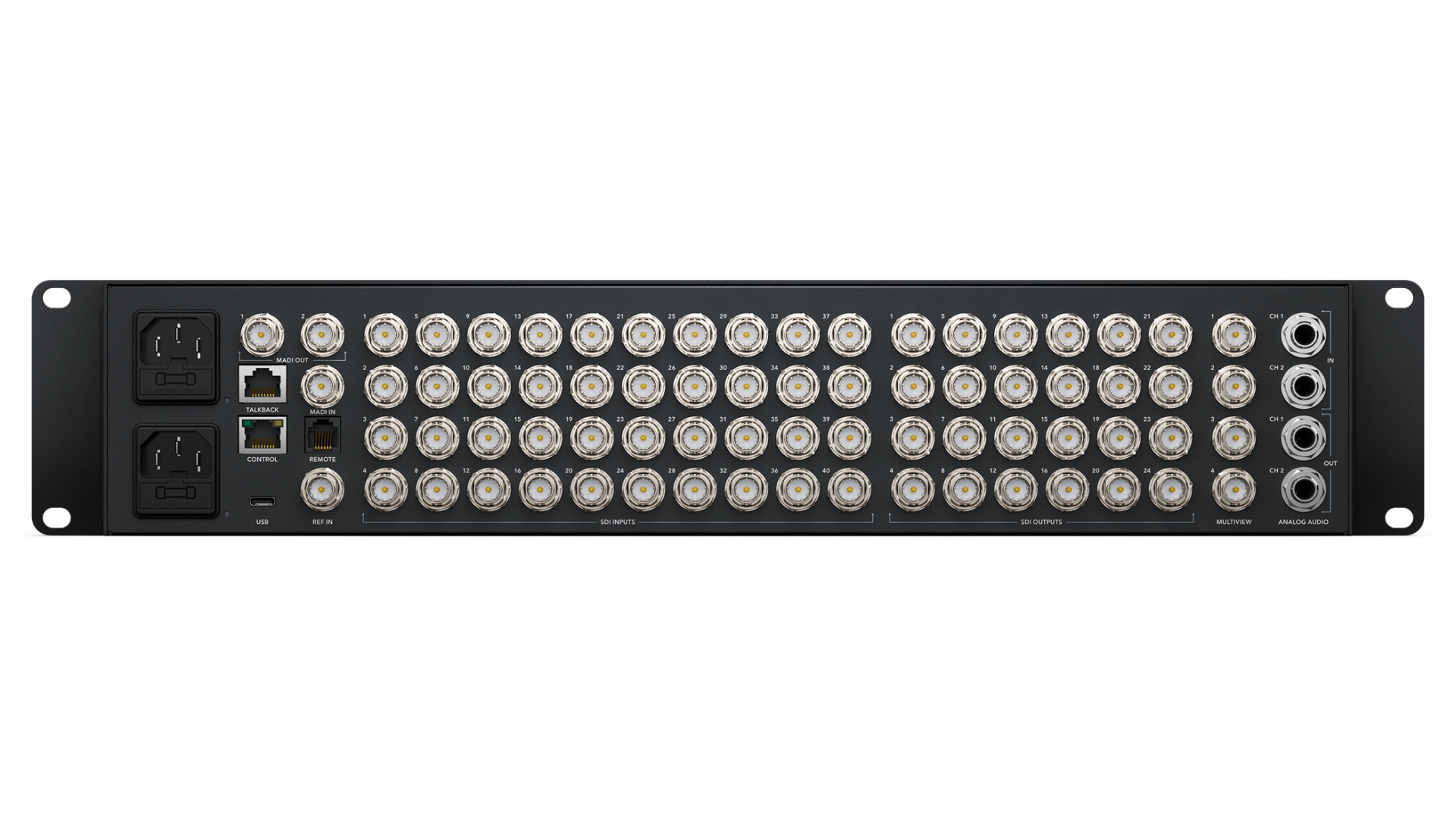 Фамилията ATEM Constellation включва HD модели, които имат до 40 независими 3G-SDI входа, както и 4K модел с 12G-SDI входове, като всеки вход разполага със собствен специален крос конвертор. Това означава, че е възможно да конвертирате всеки 1080p входен източник към видео стандарта на миксера! Също така, че можете да накарате всеки SDI вход на видео миксера да работи с различен телевизионен стандарт без проблем! При моделите ATEM 4 M/E Constellation можете дори да прехвърлите аудио канали 1, 2, 3 и 4 от SDI входове 1 до 30 към двата MADI цифрови аудио изхода, така че можете да прехвърлите аудио входа на видео миксера към външен аудио инженер за смесване.