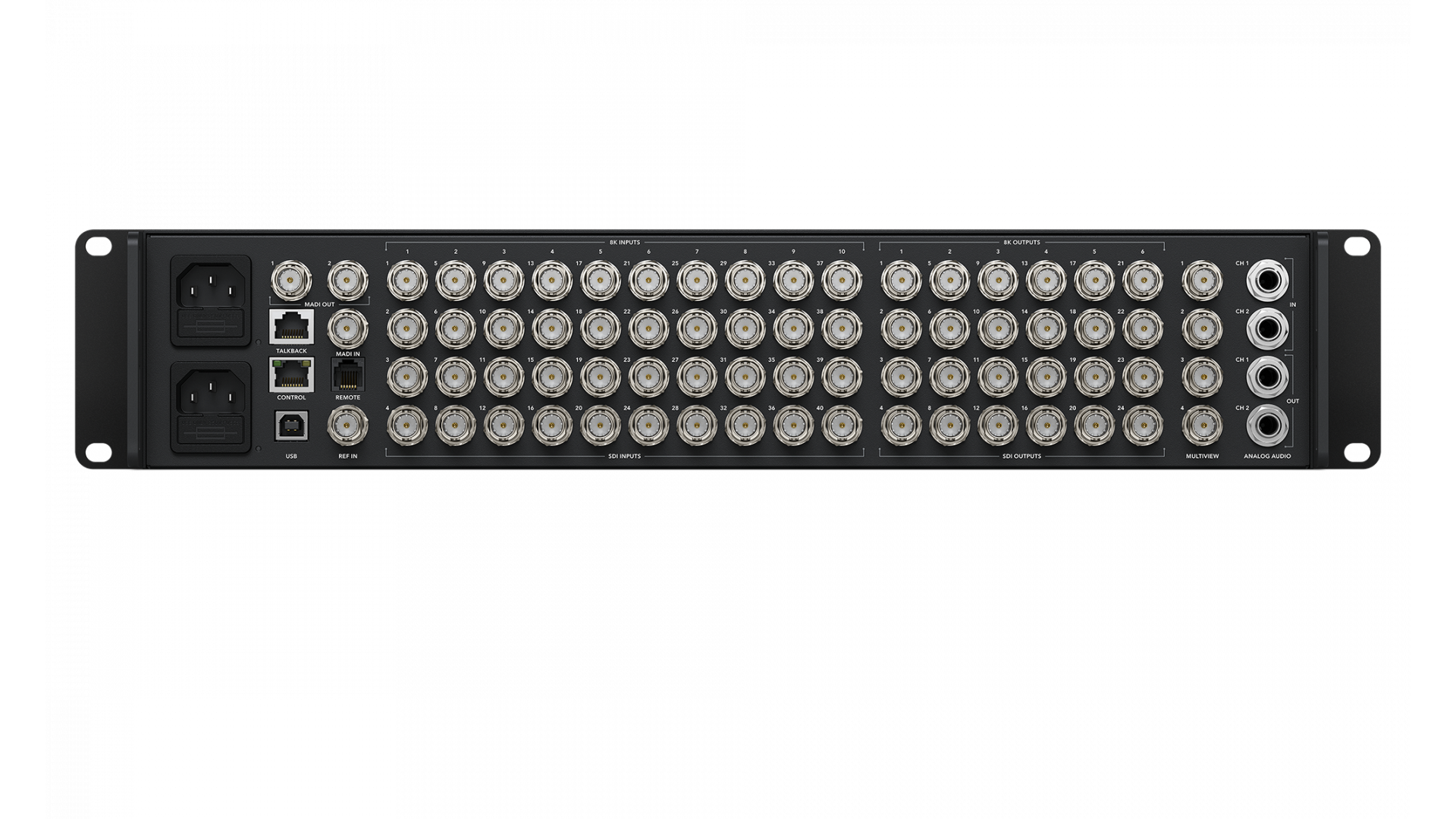 Видео миксер за Ultra HD продукция на живо с толкова много функции, че можете да ги комбинирате , за да направите невероятно мощен 8K смесител! Този масивен 4 M/E превключвател разполага с 40 12G-SDI входа, 24 12G-SDI aux изхода, 4 DVE, 16 ATEM Advanced Chroma Keyers, 4 медийни плейъра, 4 независими Ultra HD мултиизгледа, 2 SuperSource процесора и дори преобразуване на стандарти на всички входове ! Когато се превключи за работа в 8K, всички тези функции се комбинират, за да направят мощен нативен 8K превключвател! Получавате дори вграден talkback и професионален 156-канален аудио миксер Fairlight с EQ и динамика!
