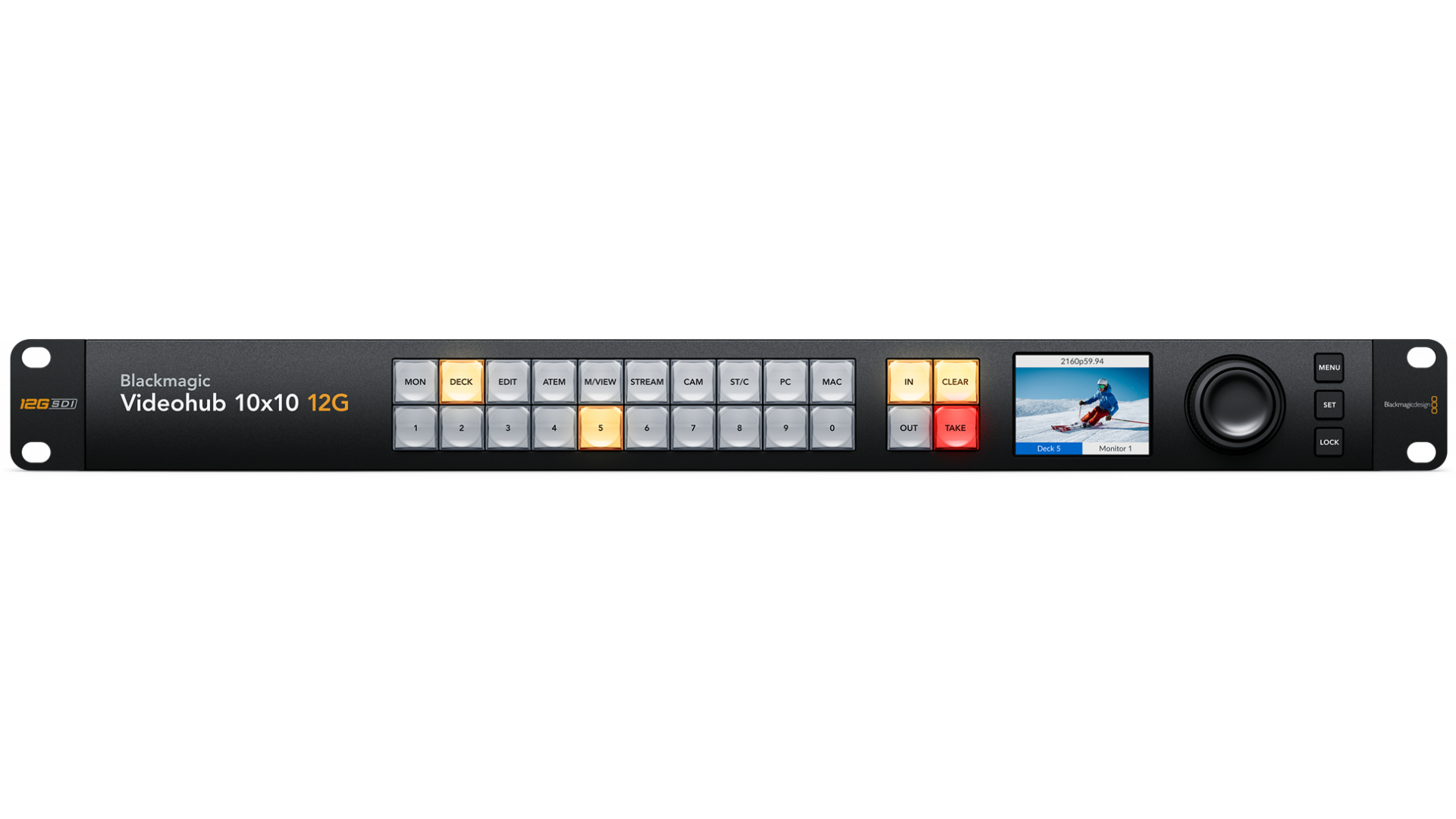 Blackmagic Videohub 10x10 12G е усъвършенстван видео рутер с нулева латентност, който поддържа всяка комбинация от SD, HD и Ultra HD на рутера едновременно. Той има 10 12G-SDI входа и 10 12G-SDI изхода плюс референтни връзки в един размер на стелаж. LCD на предния панел ви позволява да видите видео преди маршрутизиране и ясно показва етикетите за маршрутизиране и видео стандартите. Маршрутизирането може да се извърши чрез директен избор на бутон и използване на голямото копче за центрофугиране, което има електронен съединител. Той също така разполага с SDI re-clocking, външен Ethernet контрол и поддържа всички SDI видео стандарти до 2160p60.