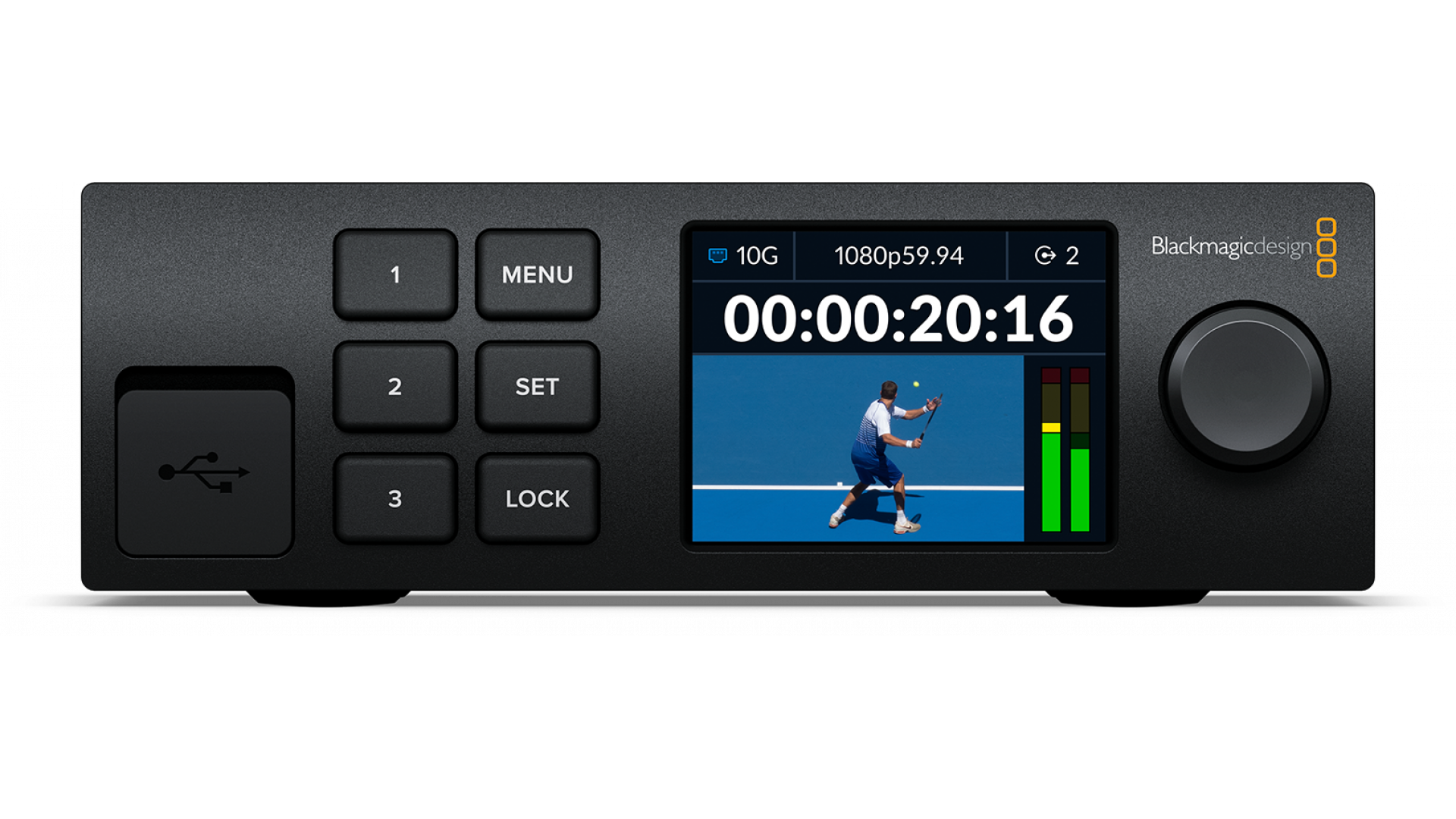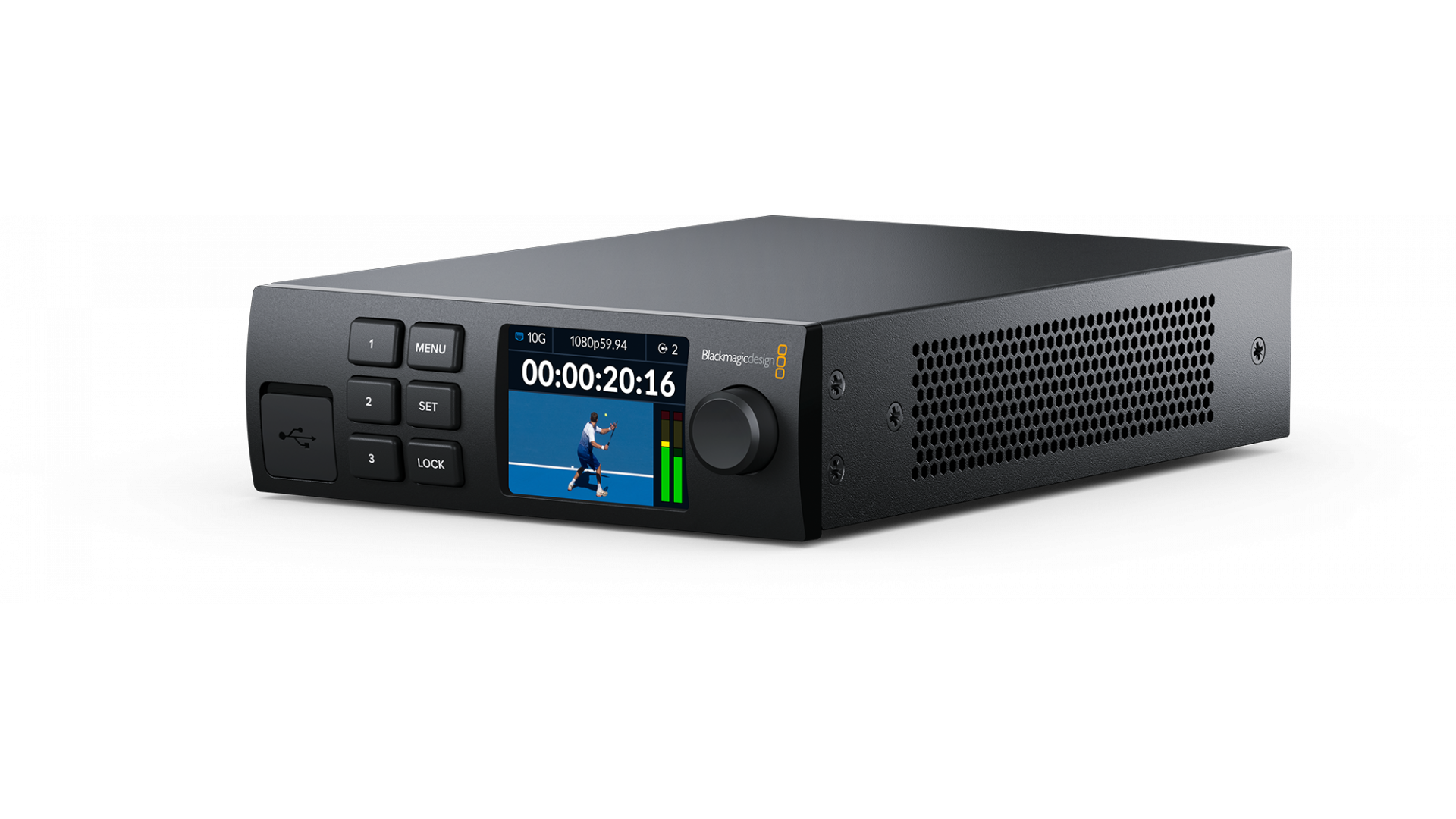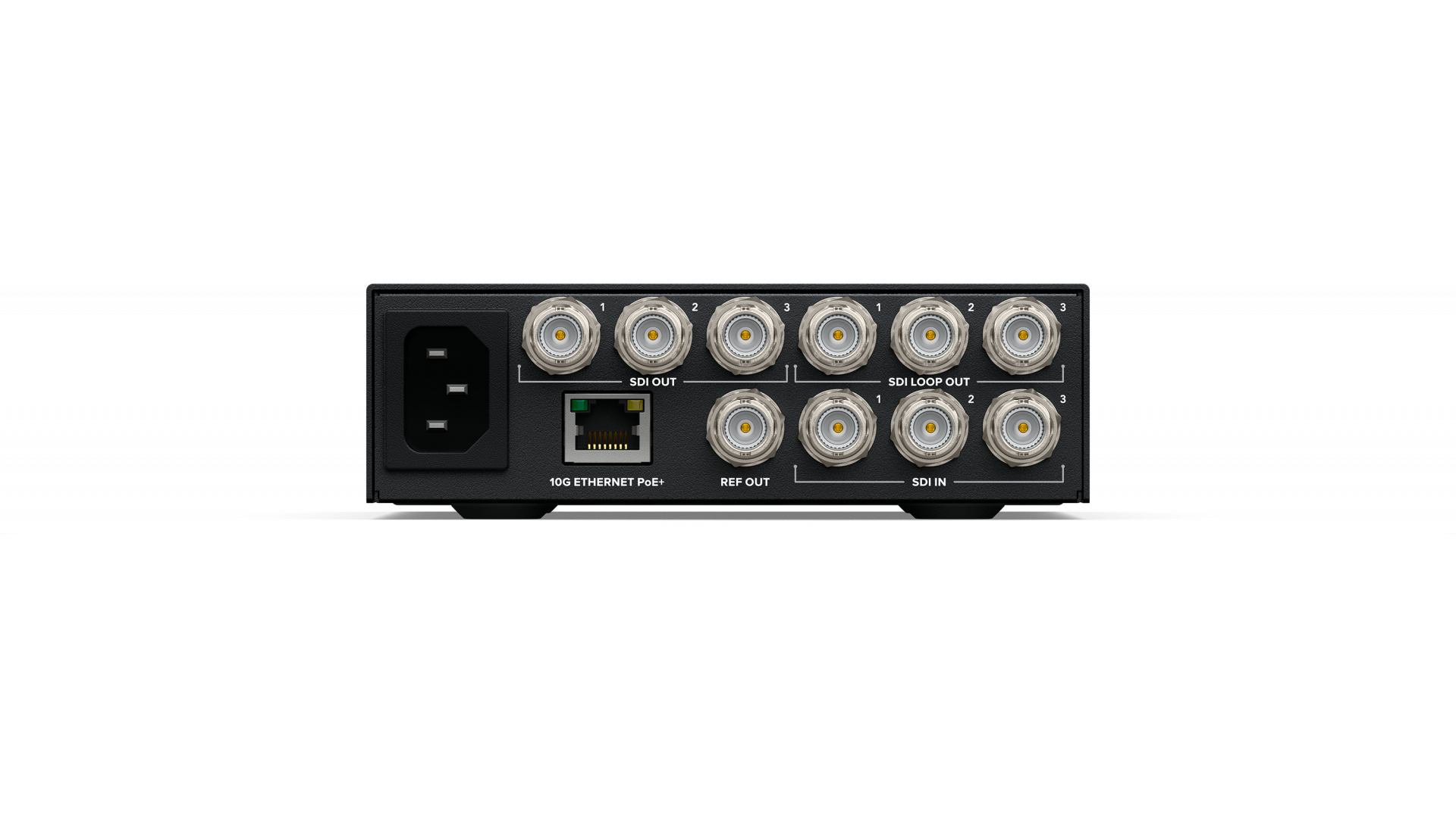 Новият Blackmagic 2110 IP Converter 3x3G ви позволява да конвертирате 3 отделни 3G-SDI устройства в 2110 IP видео системи. Това е така, защото неговата 10G Ethernet връзка може да обработва 3 отделни видео канала едновременно. Освен това всеки канал има независими SDI входове и SDI изходи, така, че можете да свържете до 6 напълно различни SDI устройства! Всички 3G-SDI входове разполагат с "loop"изходи и можете да инсталирате конвертора последователно на вече съществуваща SDI линия. Има и референтен изход, синхронизиран с часовника през 2110 PTP! Blackmagic 2110 IP Converter 3x3G включва елегантен преден панел с цветен LCD екран за наблюдение, менюта и диагностика. Можете дори да маршрутизирате IP входове от панела! Връзки SDI входове: 3 SDI "loop" изходи: 3 SDI изходи: 3 SDI аудио входове: 16 канала вградено аудио. SMPTE 2110 вход / изход: 10G Ethernet поддържа 3 x видео входни канала и 3 x видео изходни канала всеки до 1080p60 и до 16 канала за вградено аудио плюс спомагателни данни. 10G Ethernet порт: 1 x 10Gb/s PoE+ RJ‑45 конектор поддържа 10/100/1000/10G BASE-T. Референтен изход: Tri-Sync или Black Burst. Компютърен интерфейс: USB-C за актуализации, конфигурация и контрол. Видео стандарти SD видео стандарти: 525i59.94 NTSC, 625i50 PAL HD видео стандарти: 720p50, 720p59.94, 720p60 1080i50, 1080i59.94, 1080i60 1080p23.98, 1080p24, 1080p25, 1080p29.97, 1080p30, 1080p50, 1080p59, 1080p59.94, 1080p60 Съвместимост със SDI: SMPTE 259M, SMPTE 292M, SMPTE 296M, SMPTE 424M, SMPTE 425M ниво A и ниво B, ITU-R BT.656, ITU-R BT.601. Поддръжка на SDI метаданни: RP 188/SMPTE 12M-2 и затворени надписи. Аудио семплиране: Телевизионна стандартна честота на семплиране от 48 kHz и 24 бита. Прецизност на цветовете: 8, 10 RGB 4:4:4 във всички режими до 1080p30 и 8, 10-bit YUV 4:2:2 във всички режими. Цветово пространство: REC 601, REC 709 Съвместимост с IP видео SMPTE 2110-20 (Некомпресирано видео): IGMP v2 SMPTE 2110-21 (Оформяне на трафика): Подател: Narrow Приемник: Naroow, Wide Synchronous , Asynchronous SMPTE 2110-30 (PCM): Ниво на аудио съответствие: Level C SMPTE 2110-40 (Допълнителни данни): Пълен достъп до целия поток от спомагателни данни SMPTE. Включва RP 188/SMPTE 12M-2, Closed Captioning и HDR статични метаданни. Протокол за прецизно време: IEEE 1588-2008 (PTP v2) ST 2059-1 ST 2059-2 Откриване и регистрация на NMOS IS-04: v1.3.2 Peer-to-peer чрез mDNS/DNS-SD NMOS IS-05 Connection Management: v1.1.2 NMOS BCP-002-01: Natural Grouping NMOS BCP-004-01: Receiver capabilities