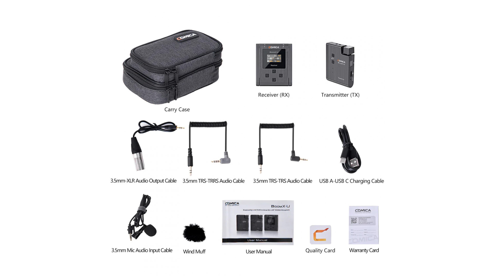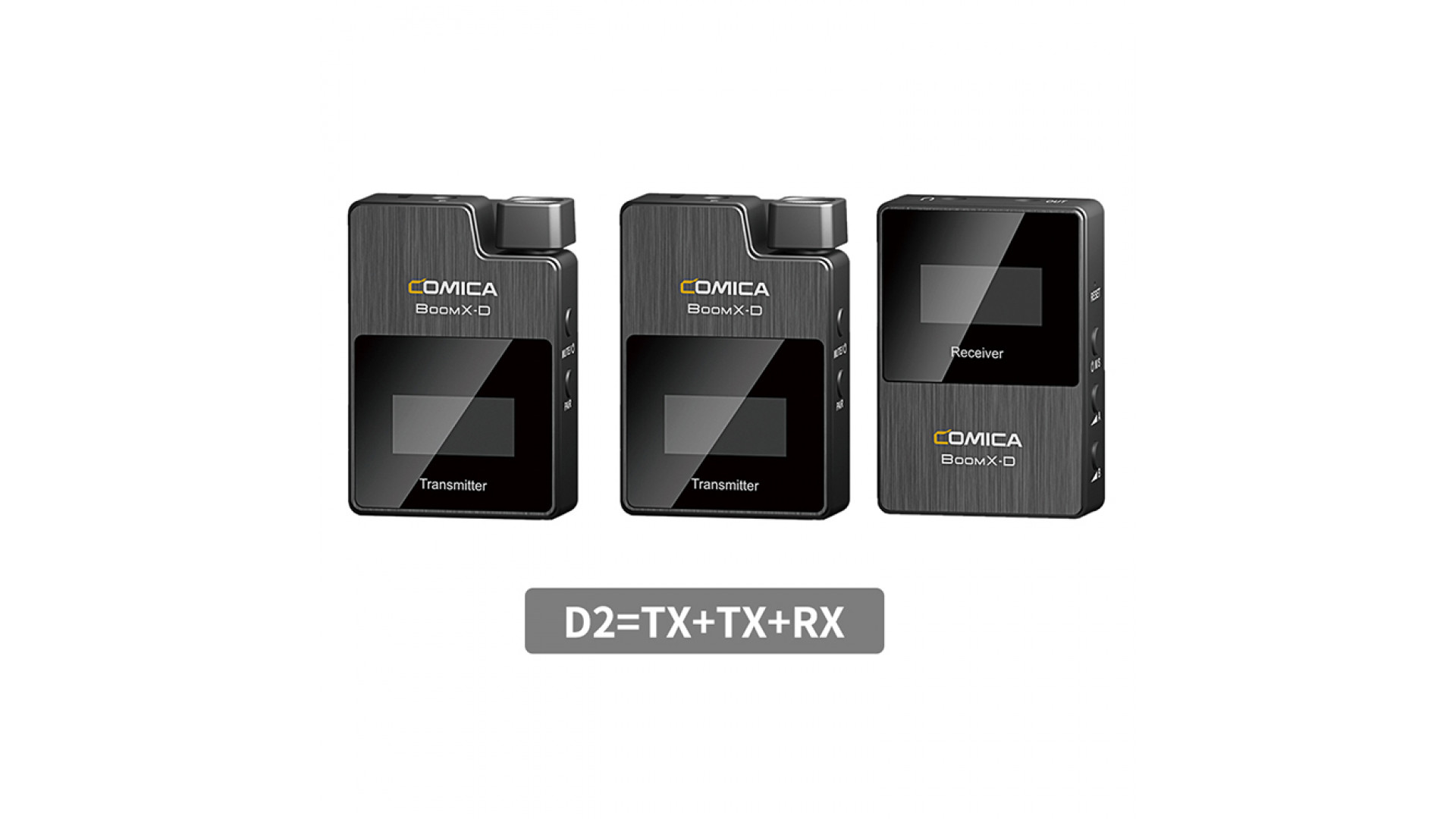 The ultralightweight BoomX-D D2 consists of two ultracompact clip-on transmitter with its own built-in omnidirectional microphone and a separate lavalier microphone. It also comes with a tiny receiver that mounts on and plugs directly into your camera. Additionally, the included TRRS output cable gives you the option to plug the receiver into any smartphone equipped with a headphone jack.