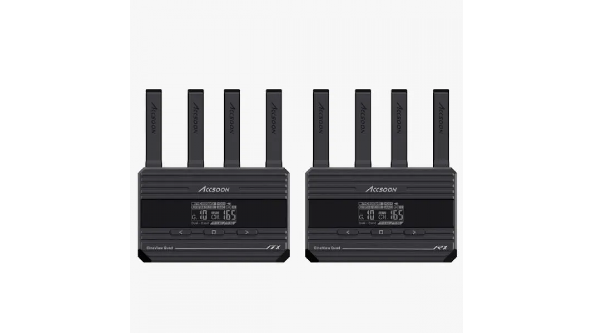 Accsoon CineView Quad е двулентова SDI&HDMI (2,4 GHz и 5 GHz) система за видео предавател и приемник на безжична камера, включваща уникален дизайн на сгъваема антена.