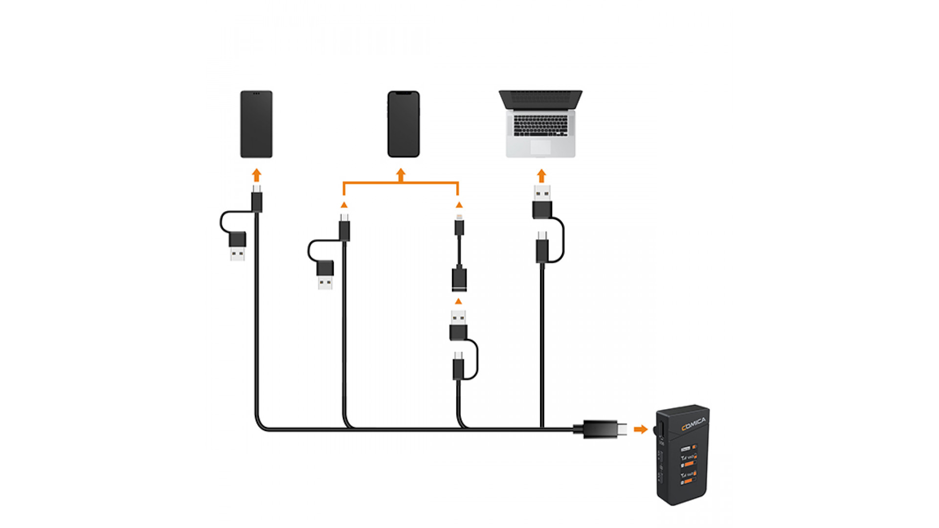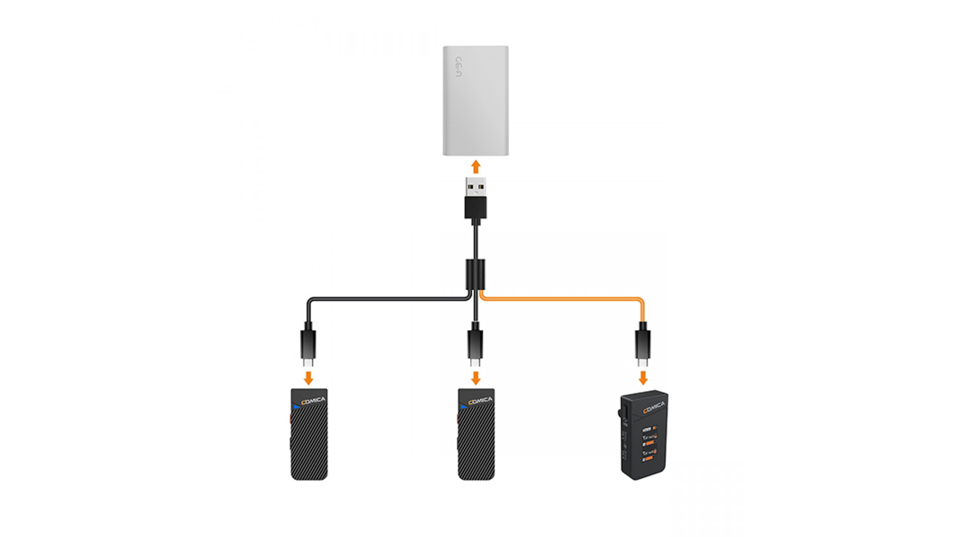 Оборудван с USB-C порт за зареждане/изход, Vimo C1 и C2 могат да работят заедно с 1 до 3 кабела за зареждане/изход, а Vimo C3 може да работи заедно с 2 в 1 кабел за зареждане/изход. Поддържа свързване с устройства за цифров аудио изход или свързване с външна батерия/DC захранване за зареждане.