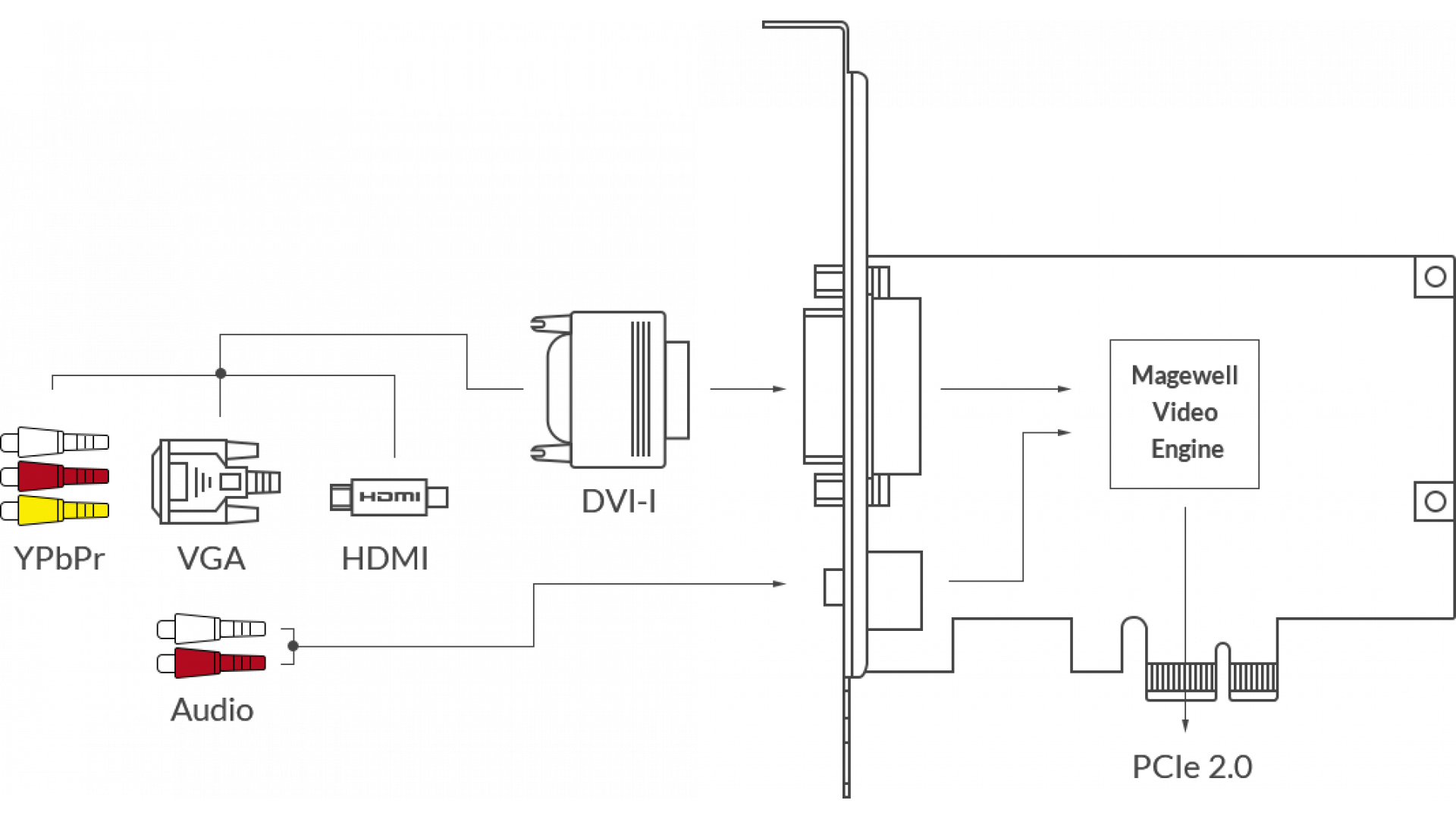 Тагове: DVI capture card, Magewell DVI video capture, low latency DVI input, professional video processing, PCIe DVI capture card