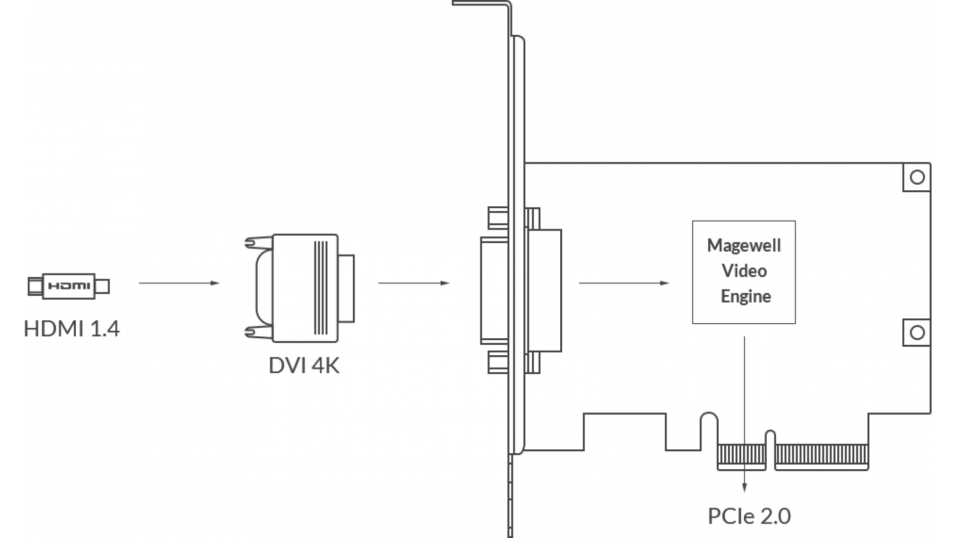 Тагове: 4K DVI capture card, Magewell 4K video capture, low latency 4K DVI input, professional video processing, PCIe 4K DVI capture card
