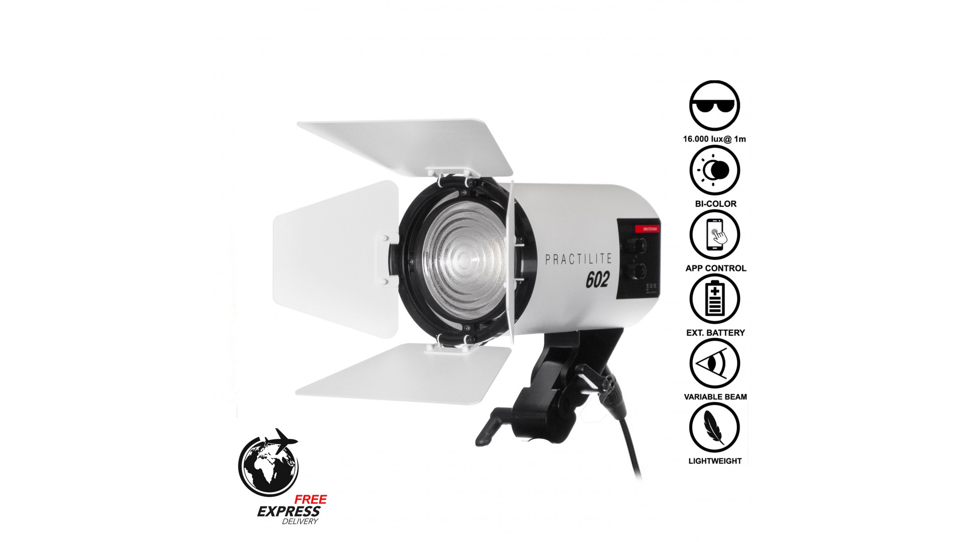 Practilite 602 е първият най-малкък и мощен "bi-color" LED френелов прожектор, с променлив фокус и дистанционно управление.