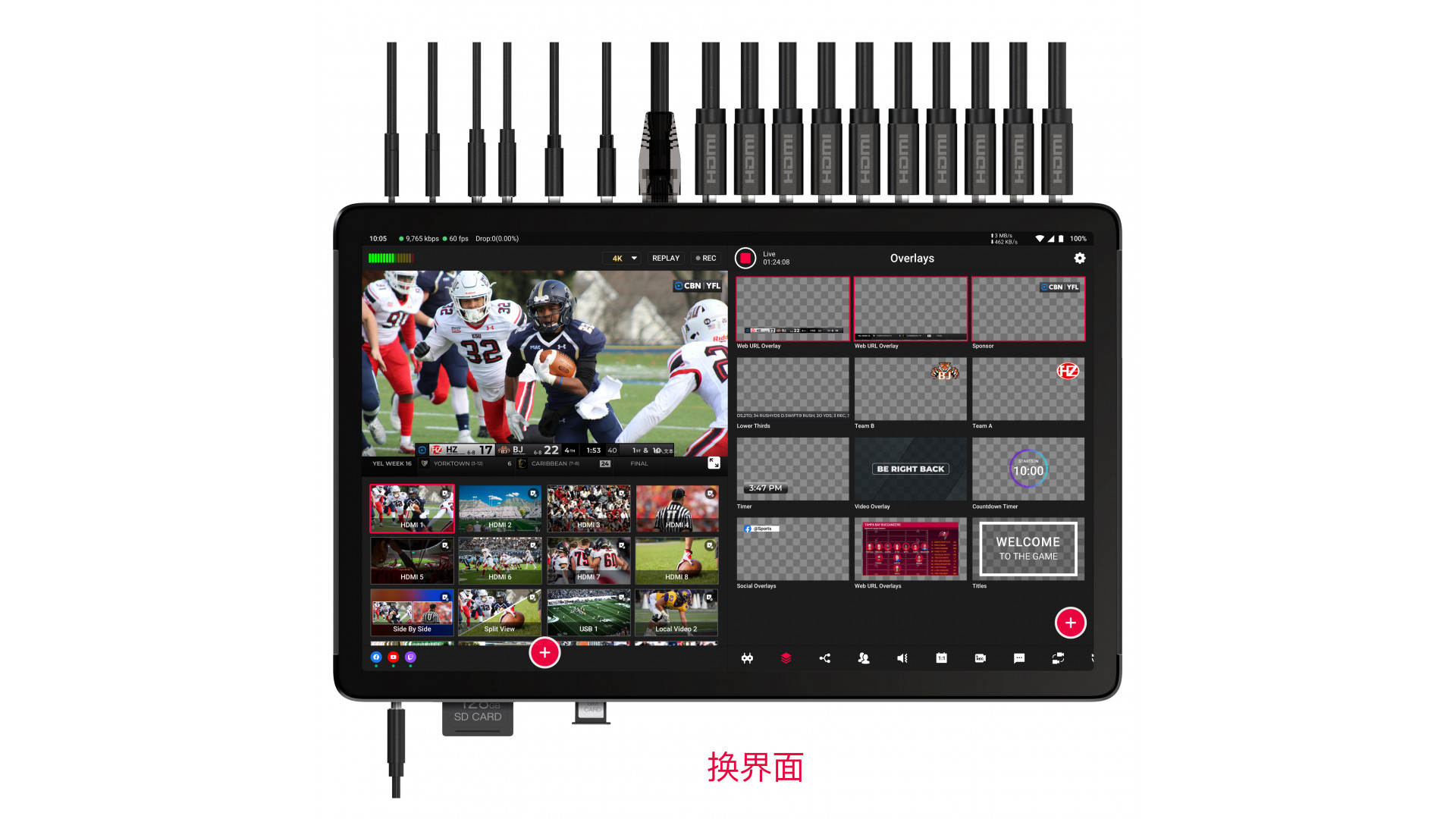 С осем HDMI входа, шест NDI входа, USB-C и USB-A портове, можете да свържете множество камери и устройства. OLED сензорният екран 11.2" с яркост 1000 cd/m² осигурява отлична видимост на открито, а вградената батерия 10,000mAh позволява до 10 часа непрекъснато излъчване.